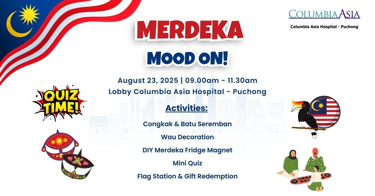 Join us on August 23, 2025 (9:00am โ 11:30am) at our hospital lobby for a fun-filled morning as we celebrate Malaysiaโs 68th Independence Day! โ